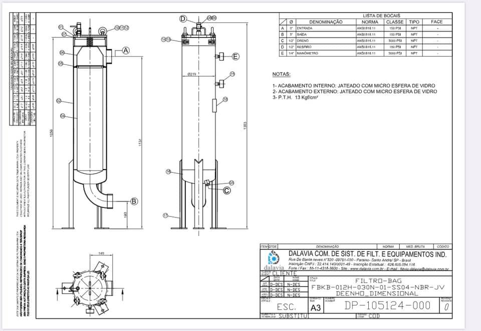 CARCAÇA INOX BAG BAIXA VAZÃO